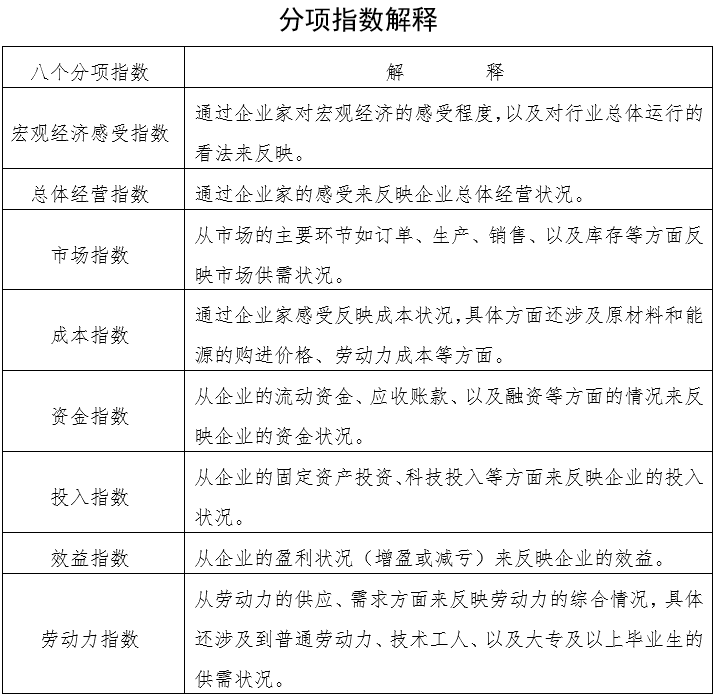 中小企业发展指数通过对国民经济八大行业的3000家中小企业进行调查,利用中小企业对本行业运行和企业生产经营状况的判断和预期数据编制而成,是反映中小企业经济运行状况的综合指数。